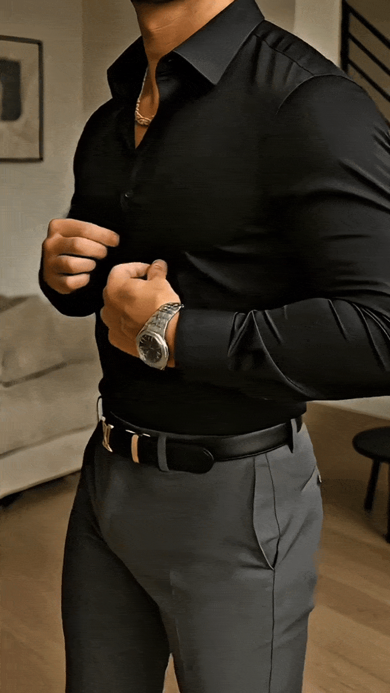 Absolutely. The stretch fibers are woven into the fabric — not added on top — so the shirt looks like a classic high-end dress shirt, not gymwear. You’ll get the sharp, structured appearance of premium cotton with the comfort and flexibility of performance wear.